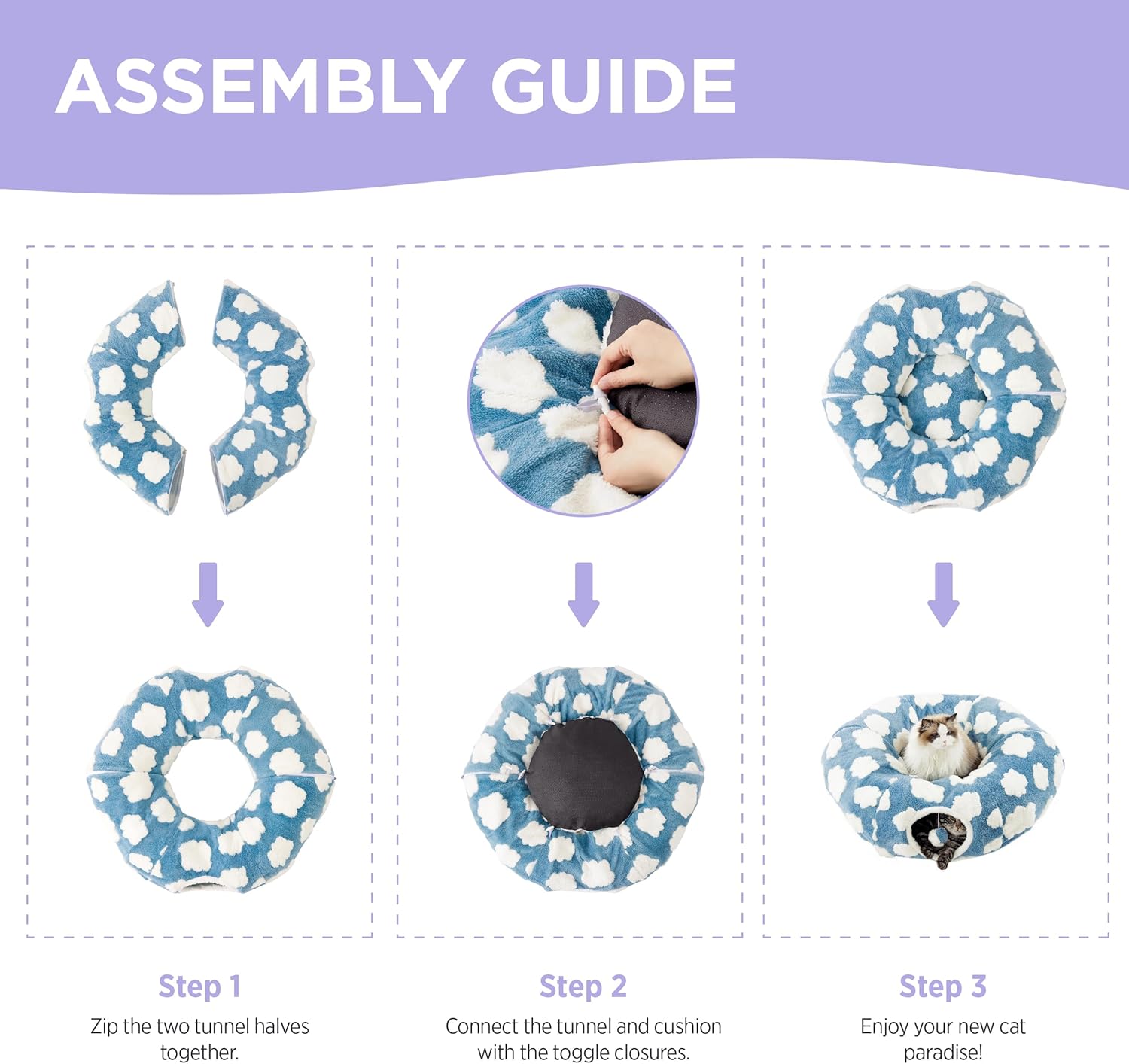 Hassle-Free Maintenance: Designed with your convenience in mind, this cat tunnel bed is effortless to assemble and quick to store. The removable inner bed is machine washable, ensuring easy clean-up. Plus, the non-slip, studded bottom keeps the tunnel securely in place, providing your pet with a stable and comforting space to relax and play.